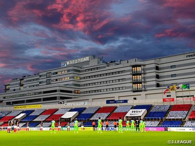 J1第3節の横浜F・マリノス対湘南ベルマーレの試合では、面白い光景が見られました。会場のニッパツ三ツ沢球技場のバックスタンド裏には、5月に完成したばかりの横浜市民病院の大きな建物があるのですが、選手や審判員たち全員がそちらに向いて拍手を送ったのです。その市民病院の最上階7階と6階の窓には、「おかえりなさいJリーグ。三ツ沢で心をひとつに」という手書きの紙が窓ガラスに並べて貼られていました。