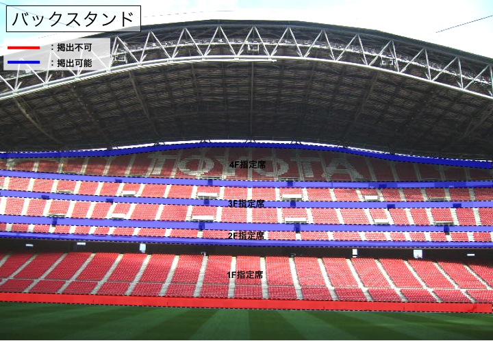 - 2. 横断幕掲出可能場所は、『お手持ちのチケットカテゴリー』の範囲内とします。