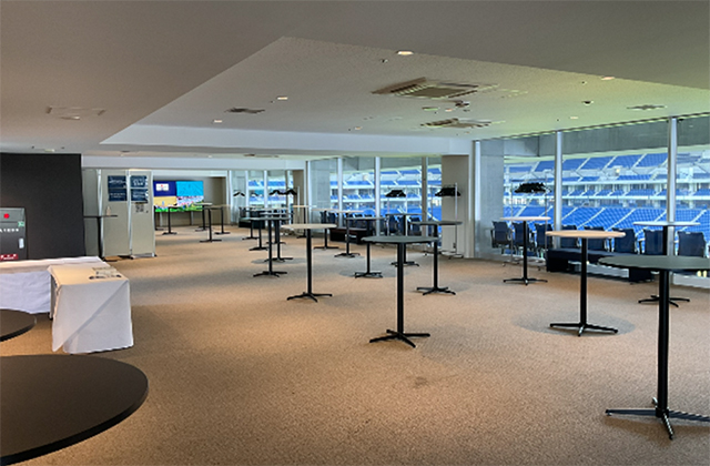 - ラウンジ付シートは屋外観戦のできるバルコニー席と屋内のラウンジからなる、バックスタンド側の特別室です。