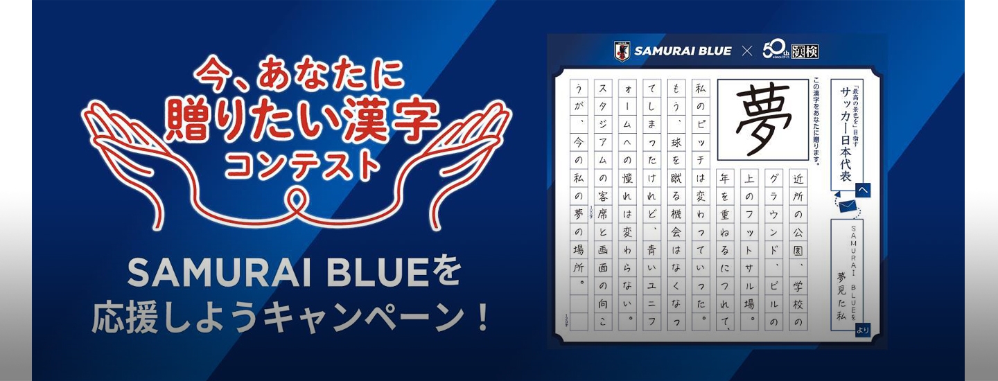 日本サッカー協会×日本漢字能力検定協会 SAMURAI BLUE(日本代表)に贈りたい『漢字一字と応援メッセージ』を大募集!―審査員に宮本恒靖会長(日本サッカー協会)、森保一監督(SAMURAI BLUE)―