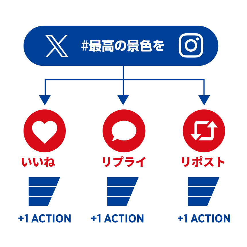 ※対象となるSNS投稿へのいいね、リプライ、リポストや各種メッセージ投稿・記入などのアクションをそれぞれ1アクションとして換算します。