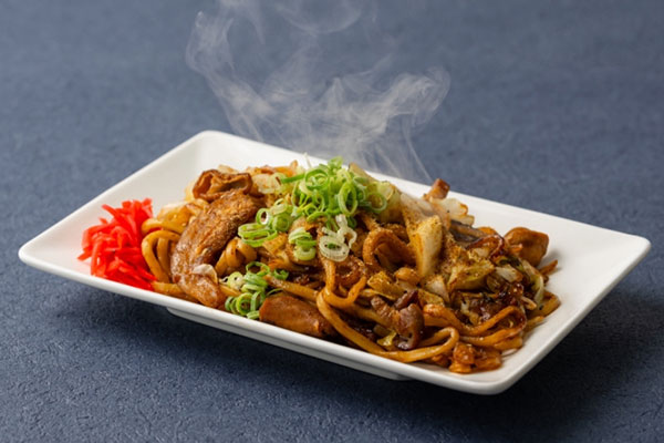 国産豚肉ホルモンと油かすを使い、香辛料を控えめに、トマトとオイスターエキスのコクとうま味豊かに仕上げたホルモン焼きそばです。子どもから大人まで男女問わず好んでいただける一品です。ぜひご賞味ください。