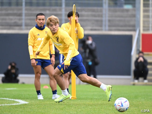 ドイツ遠征中のSAMURAI BLUE(日本代表)は9月24日(土)、キリンチャレンジカップ2022第1戦のアメリカ代表戦から一夜明け、27日(火)に行う第2戦エクアドル代表戦へ向けてデュッセルドルフ市内で練習を行いました。
