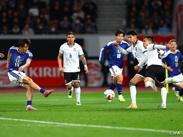 FIFAワールドカップ北中米大会開幕を7か月後に控えた年内最後の強化試合で、1994年以来の本大会出場へ来年3月のFIFAプレーオフ大会に出場するボリビアと対戦した日本。4日前に勝利したガーナ戦から先発7人を入れ替えた異なる組み合わせで臨み、前半早々に1得点、後半は選手交代を活かして2得点を加えました。
