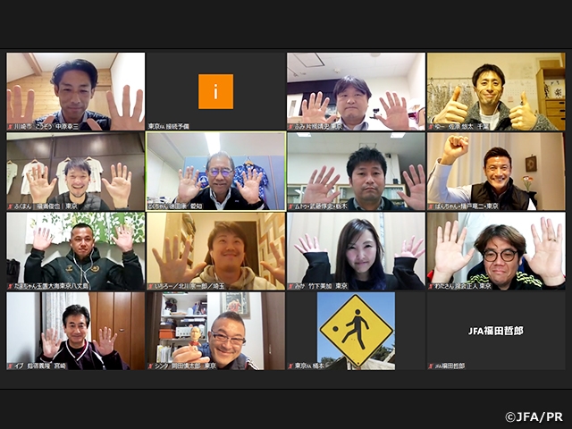 今回は12名の受講生と補講生1名が参加し、オンライン形式での参加しやすさもあり、東京都内では八丈島からも、関東圏では栃木県・埼玉県・千葉県・神奈川県、さらに遠くは宮崎県からもお集まりいただきました。また、元プロサッカー選手・日本代表の播戸竜二さん(JFAアスリート委員/JFA SDGs推進プロジェクト/WEリーグ理事)も受講し、アスリートならではの熱い夢を語っていただき、ほかの受講生にも大きな刺激になりました。