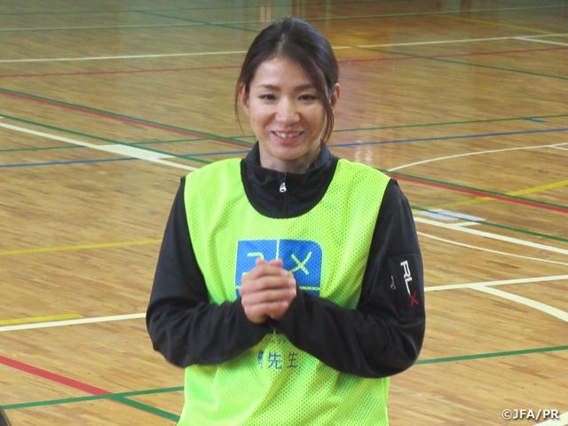 私が中学生の頃に現役トップアスリートとの出会いから夢を抱いた経験があるので、逆の立場になったと感慨深くなる一方、たった2時間の中でその感動を伝えられるか責任を感じています。授業の準備にあたりJFAのスタッフの方の協力のおかげで苦労することなく出来ましたが、登壇まで不安はあったものの、いざ本番となったら子供達の元気な姿と純粋な表情を見てさらに使命感にかられました。「ゲームは全力!トークは真剣!!」をモットーに成功と挫折、乗り越えた時の心情をなるべく子供達の目線と経験で表現するように心がけています。一人一人の表情の変化や夢シートでのメッセージに全力でぶつかることで自分も初心に帰ることができて毎回身が引き締まります。これから出会う子供達のために自身の新たな夢にも全力で挑みたいと思います。