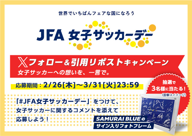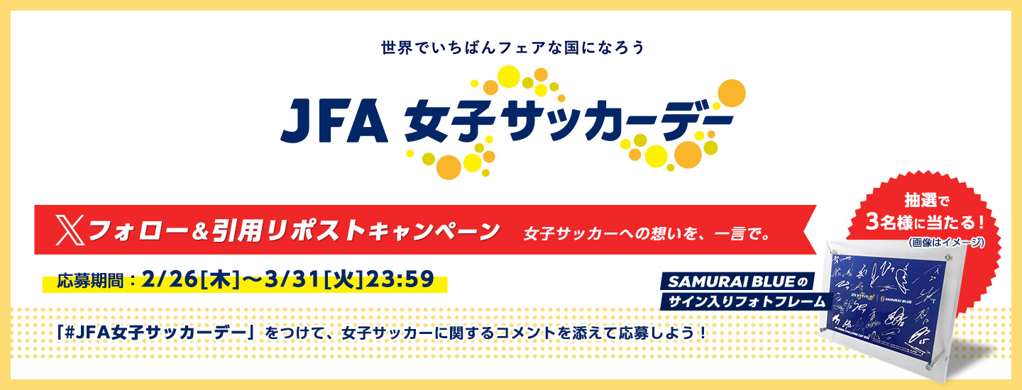 キャンペーン名:#JFA女子サッカーデー Xフォロー&引用リポストキャンペーン 女子サッカーへの想いを、一言で。