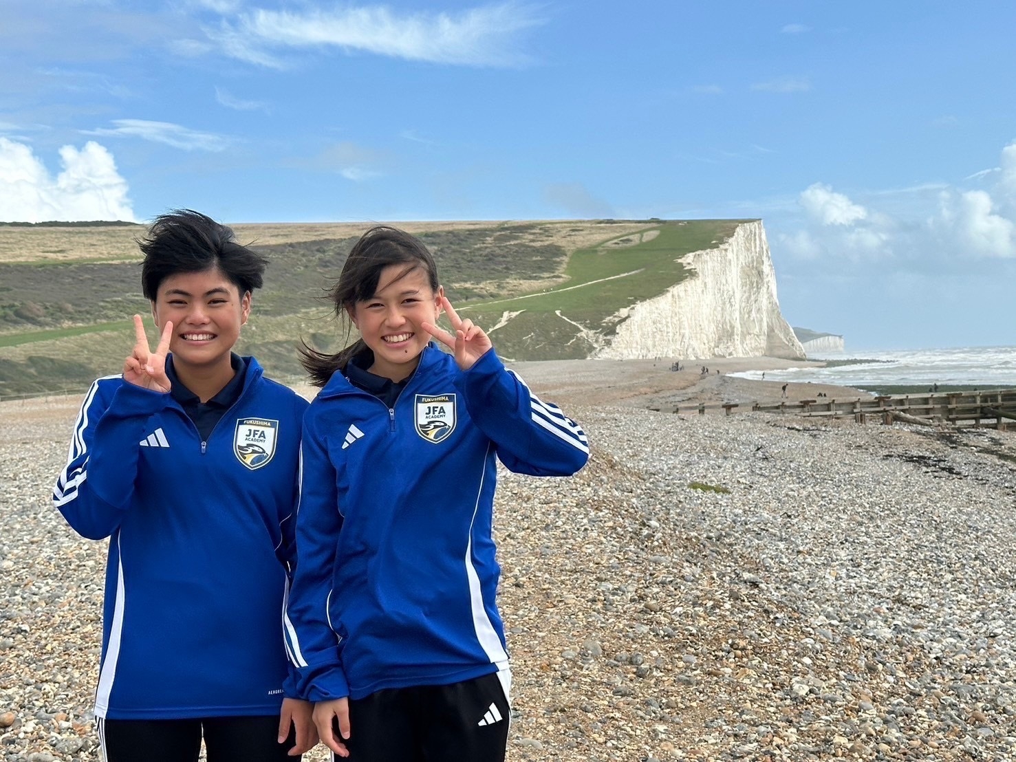 今回私は、初海外でイギリスに行きました。日本とイギリスの文化の違いや、サッカーの環境の違いがたくさんあり、多くのことを学ぶことができました。毎日の食事やサッカーのプレーの質など、日本で学べないことも多くありました。OFFの部分での食事は、日本と比べ、野菜が少なかったのが一番印象的でした。文化では日本の折り紙をホストファミリーの方と楽しめたので、とても良い時間になりました。ONのサッカーのところでは、日本のプレーの丁寧さや、正確さがすごく感じられた中で、イギリスでは、プレースピードやパワーがありました。FA女子スーパーリーグや、プレミアリーグを合計3回観て、自分もこのプレースピードの中で落ち着いたプレーをできるような選手になりたいと思いました。また、FA女子スーパーリーグに出ている清家選手と植木選手の話を聞いて驚いたのは、清家選手の相手のプレーはあまり見ないようにしていることと、植木選手の海外行きを決めた一番のきっかけは、メニーナにいて周りがうまく、とても悔しく、またメニーナに戻りたいので、海外にはステップアップというより修行だという言葉でした。私はプロの選手のプレーを観るのは当たり前で、海外に行くのは自分のステップアップのためだと思っていたので、心が動くような話を聞くことができたのが一番嬉しかったです。イギリスのFA女子スーパーリーグや、ブライトンのような素晴らしい環境で将来プレーしたいと思いました。