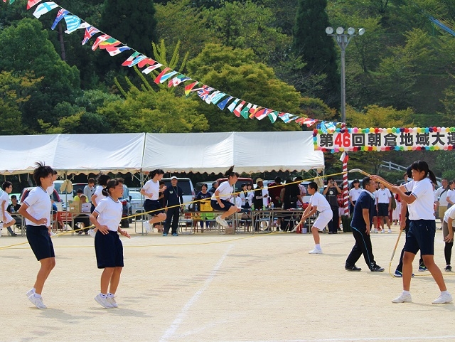 10月1日に朝倉地域大運動会に参加しました。毎年、朝倉中学校の生徒として参加をしていて、朝倉地域のみなさんと楽しみました。