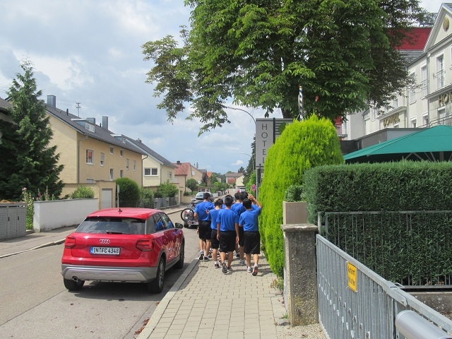 その後、身体を現地の気候、時間帯に順応させることを目的に散歩を行いました。キレイに並んだ路上駐車の車や電柱が立っていない道など日本とは違った光景を見ることで、ドイツの文化や習慣を感じることが出来ました。