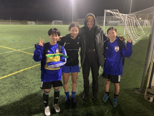 ウォーミングアップの後にいくつかのトレーニングステーションに別れ、それぞれのステーションをローテーションしました。アカデミー生は少し緊張した面持ちでスタートしましたが、BAY AREA SURFの女子たちのフレンドリーで元気な様子に触発されて嬉々としてプレーする姿が印象的でした。トレーニング後に何人かの選手はたくさん英語を話したと自慢げに話してくれました。果たしてちゃんと通じていたのかは謎ですが…。