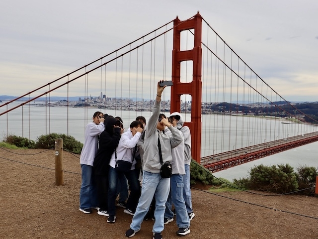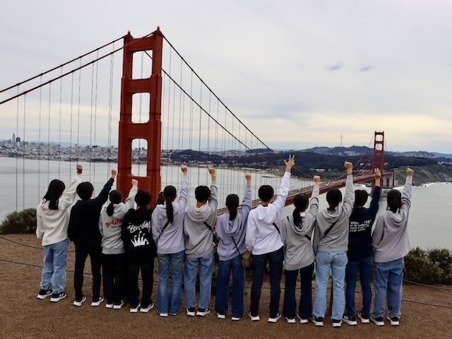 その後はゴールデンゲートブリッジに向かいました。そもそもゴールデンゲートブリッジの存在を知らない選手もいたようですが、一望できるスポットに向かうとテンションは一気にMAXに。