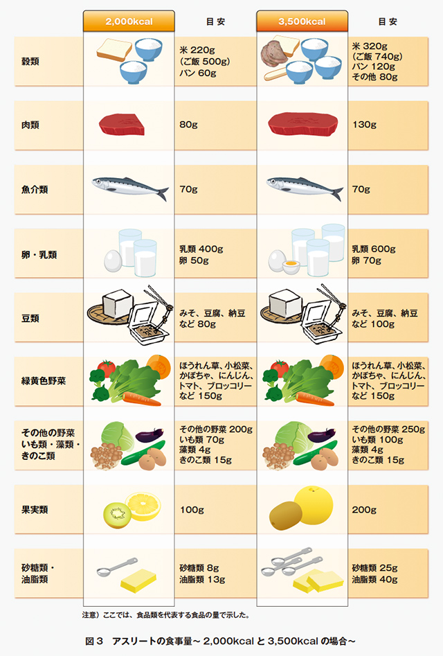 ただし,トレーニングによるエネルギー消費量によってはさらに増やす.