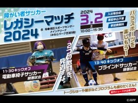 2024/02/26 3月2日(土)東京都港区で「障がい者サッカーレガシーマッチ2024」を初開催!~電動車椅子サッカーおよびブラインドサッカーの親善試合を実施/トークショーには元サッカー日本代表鈴木隆行氏、デフサッカー仲井健人氏が登壇