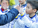 たくさんのお客さんが見守る中、あこがれの選手たちと手をつないでピッチに入場します。キックオフ直前のピッチの緊張感を味わうことができますよ。
